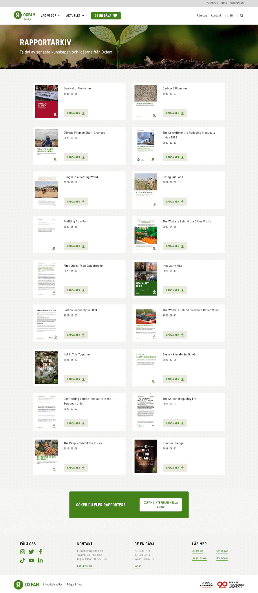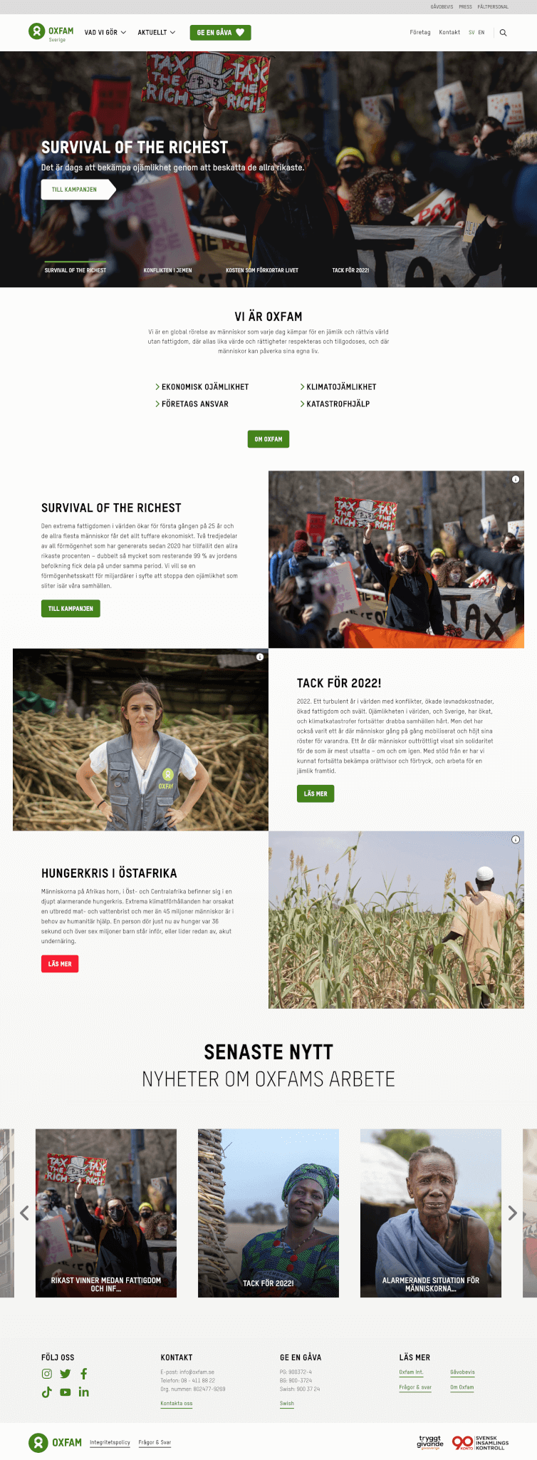 Oxfam Sverige Målsättningen med den nya hemsidan är att den ska fungera som en naturlig samlingspunkt för information, nyhetsuppdateringar och resultat, både för Oxfam Sveriges givare och nya besökare. Här ska besökare hitta all den information de behöver för att kunna bli månadsgivare, engagera sig, läsa mer om Oxfams arbete, eller bara känna sig stolta över att vara en del av rörelsen. Vidare ska hemsidan bidra till att stärka Oxfams varumärke mot allmänheten, media och andra intressenter.