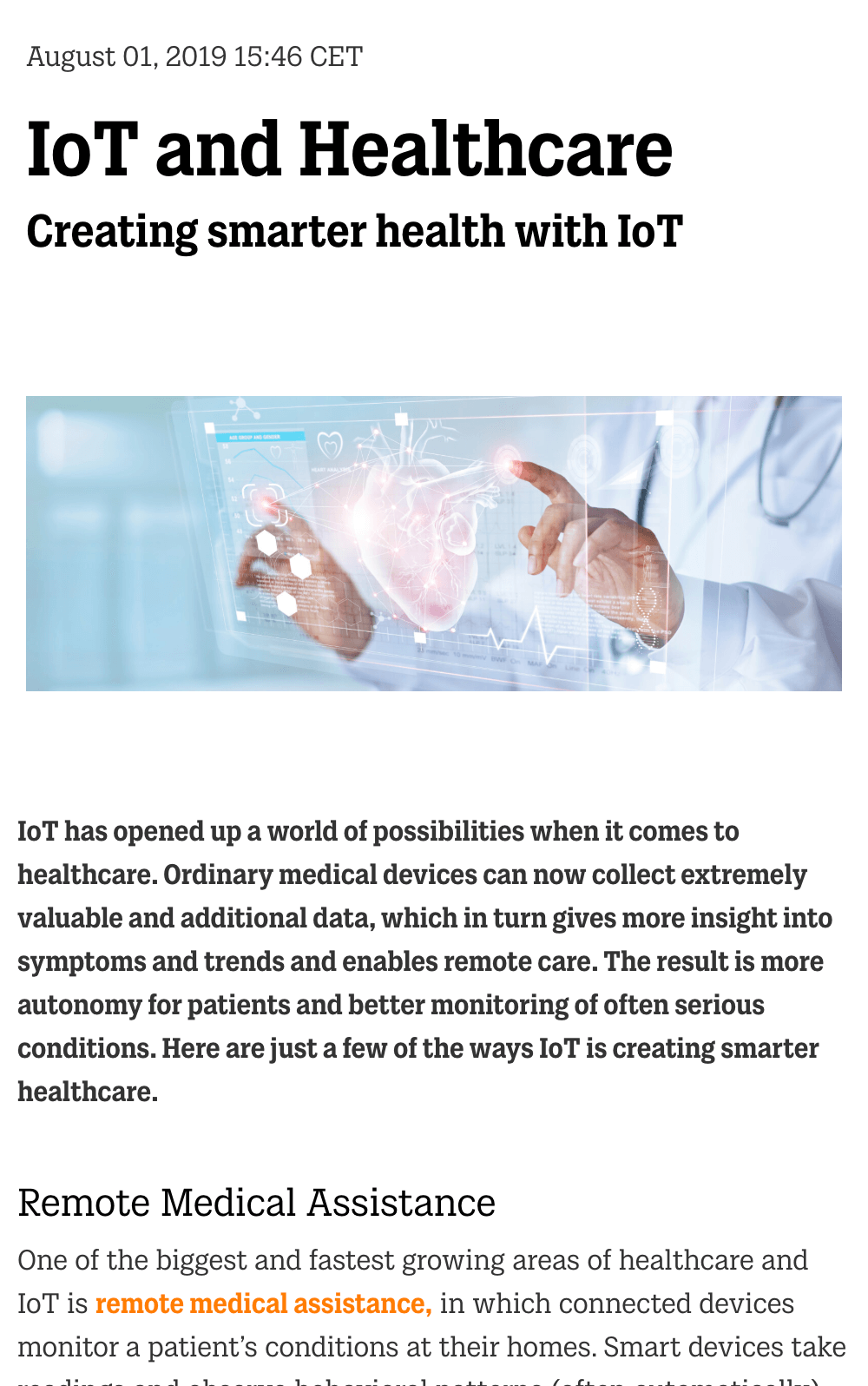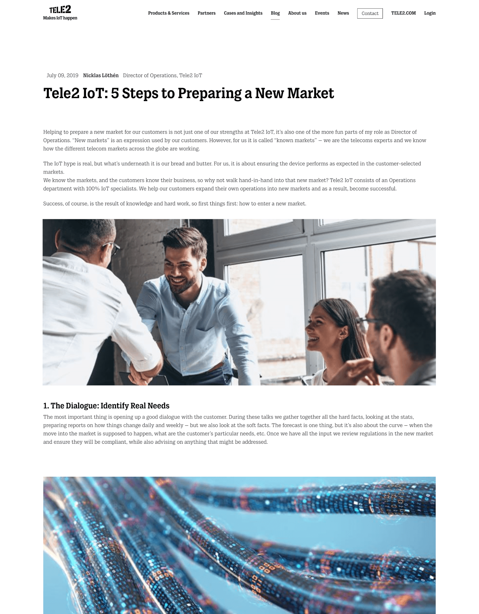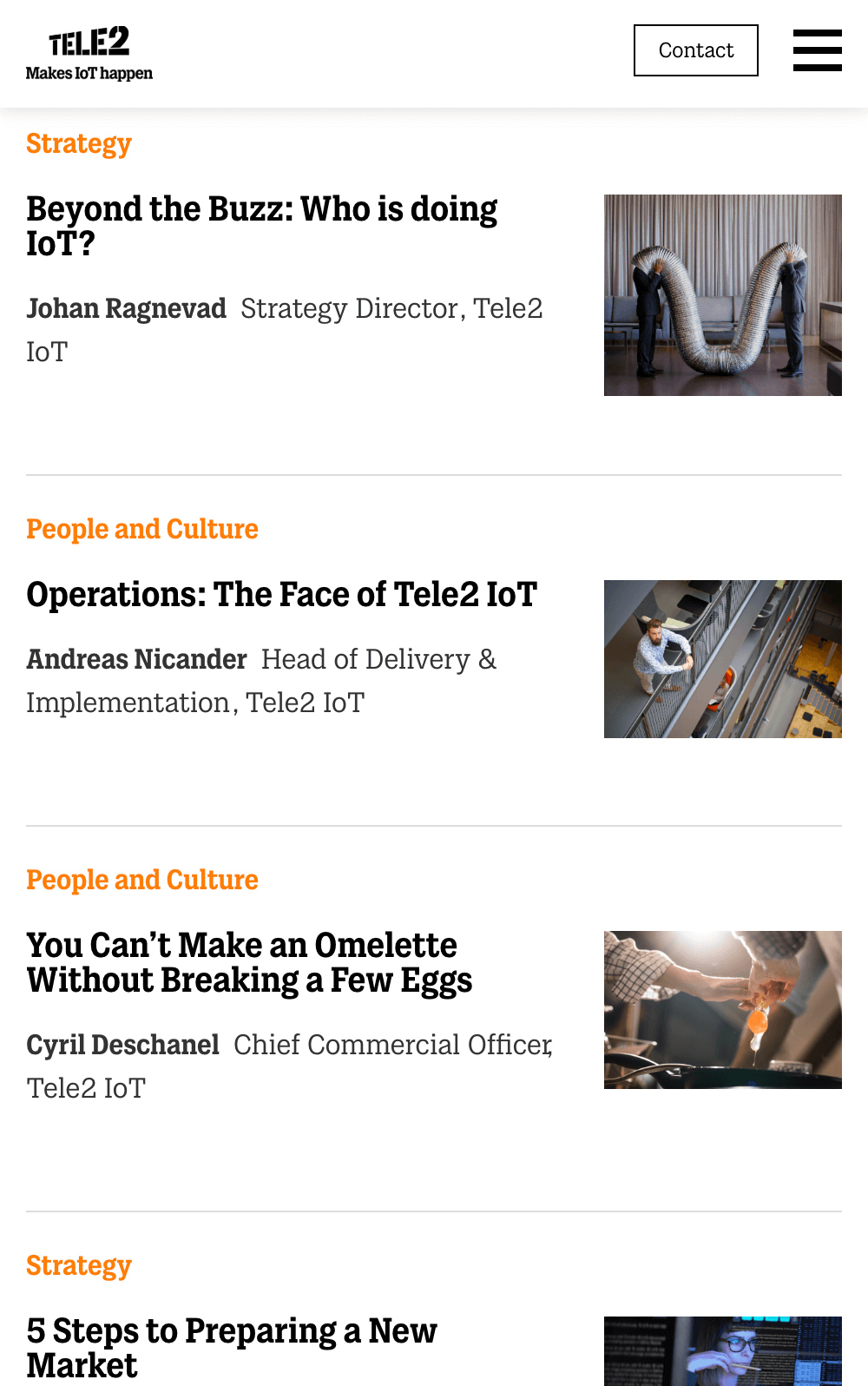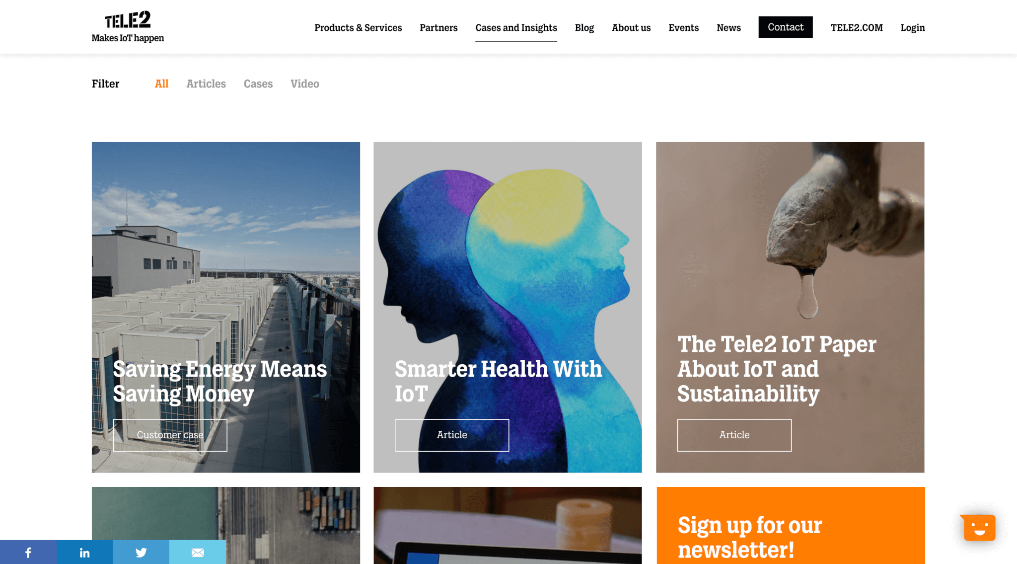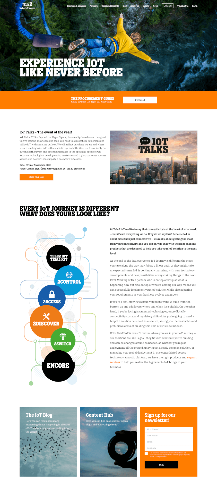 WTMG har hjälp Tele2 IOT i utvecklingen med en total redesign av Tele2iot.com. Hemsidan är ett viktigt nav i Tele2IOTs totala kommunikation ut mot marknaden och involverar därför flera olika redaktörer. Stort fokus har lagts på att göra det redaktionella innehållet så användarvänligt som möjligt, och skapa en webbplats som skänker så stor frihet som möjligt för alla redaktörer som jobbar med hemsidan, utan att tumma på användarvänligheten för besökaren och slutanvändaren.