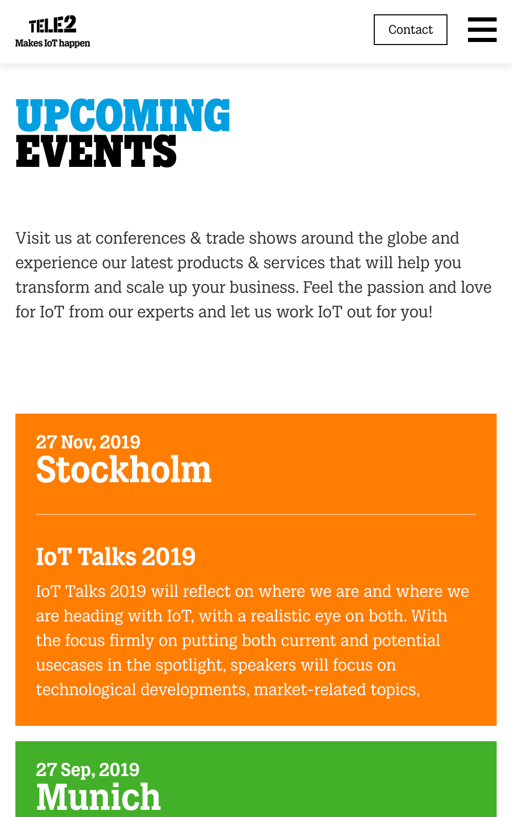 För ökad affärsnytta så kommer Tele2iot.com även att användas som grundmall i framställningen av ett antal temporära kampanjsidor, där Tele2 IoT Asset Management är den första kampanjsidan att lanseras. Under projektet har WTMG arbetat med en extern designer och tillsammans med teamet hos Tele2IOT, och vi fortsätter nu med löpande projektledning och vidareutveckling av hemsidan.