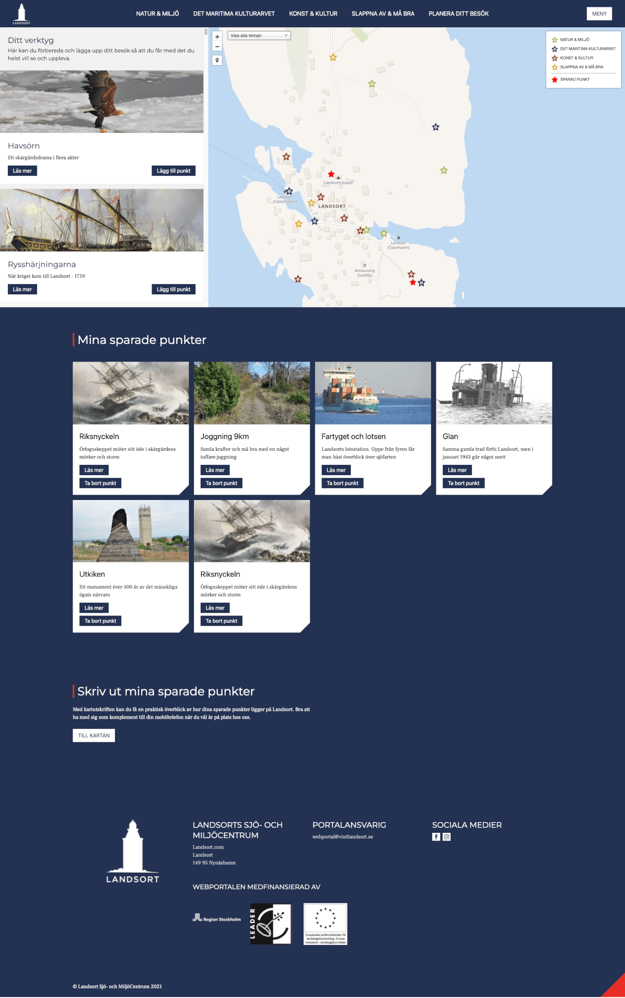 Förutom att hantera den stora mängden material så lades mycket av utvecklingstiden på att få till de interaktiva kartor som sidan består. Tanken är att besökaren till Landsort skall kunna ha webbplatsen som stöd under sitt besök. Som ett led i detta byggdes bland annat funktionen ”Planera ditt besök” där besökaren själv kan bygga ihop sitt perfekta besök och ta med sig planen ut till Landsort för att uppleva allt på plats.