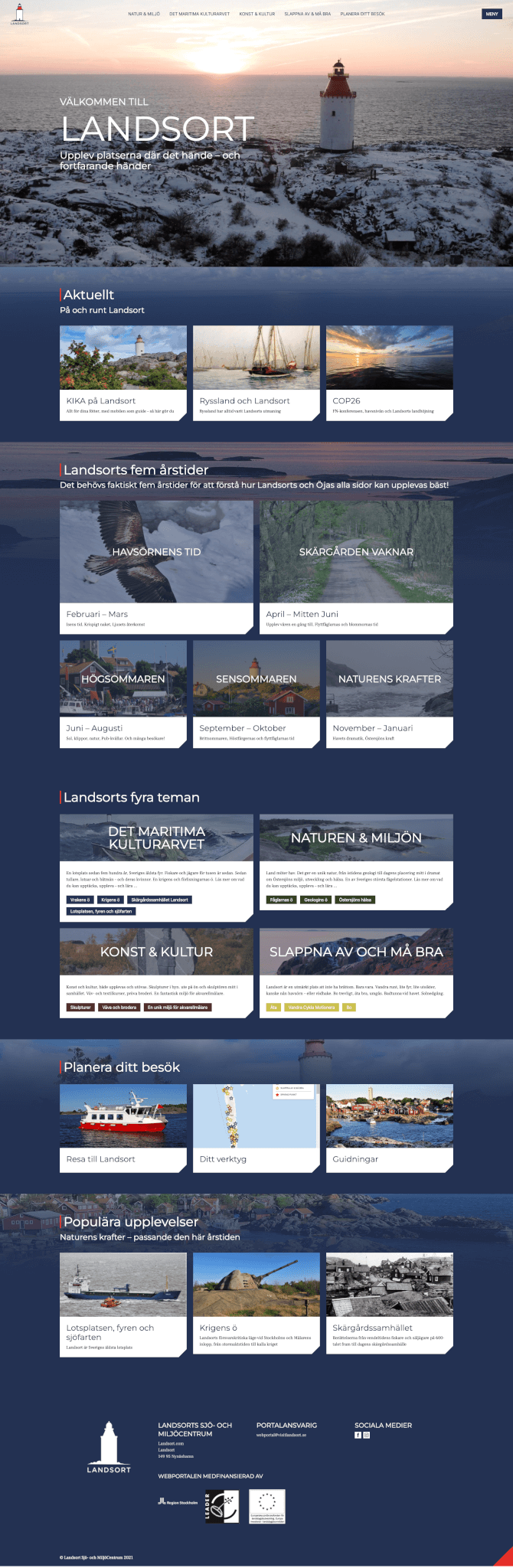 Den stora utmaningen i designarbetet var att hitta ett sätt att presentera allt för besökaren utan att det blir övermäktigt. Detta gjordes genom att skära materialet på två ledder, dels i de fem teman som finns för sidan men även i de fem årstider som finns på Landsort.